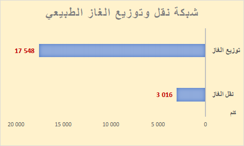 بلغ طول شبكة نقل وتوزيع الغاز الطبيعي إلى موفى سنة 2021 قرابة 564 20 كلم منها 3016 كلم نقل و548 17 توزيع، وهي تتوزع كما يلي: