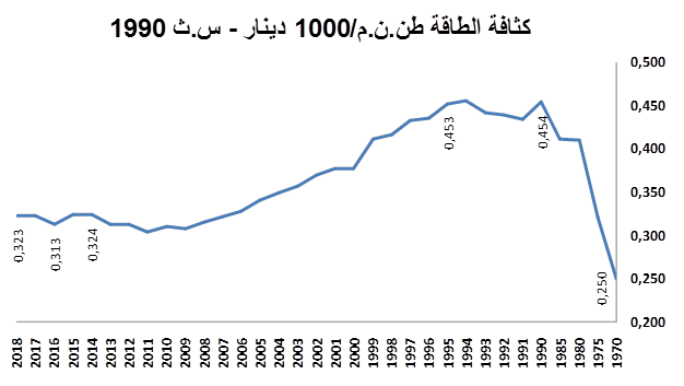 كما أسفرت هذه الجهود المبذولة من قبل الدولة التونسية منذ الثمانينيات عن تحقيق فصل بين نسقي تطور استهلاك الطاقة والنمو الاقتصادي بالإضافة إلى الانخفاض الكبير لمؤشر كثافة الطاقة في البلاد من 0,454 طن.ن.م/1000 دينار في سنة 1990 إلى 0,313 طن.ن.م/1000 دينار في سنة 2010 مع ركود طفيف منذ سنة 2011 بسبب الظروف الاقتصادية بعد الثورة.