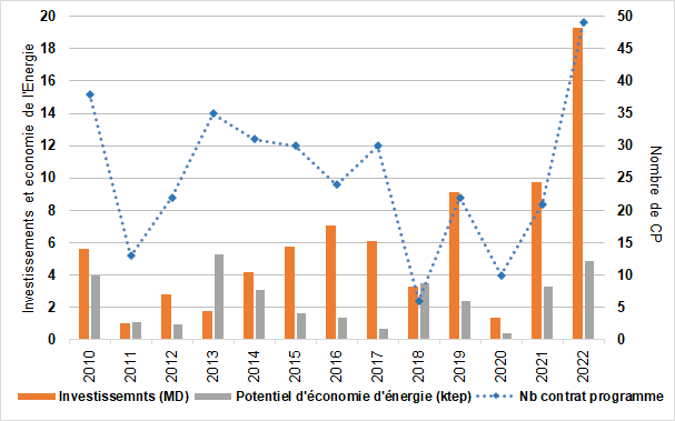 Depuis 2010, 393 audits énergétiques et 326 contrat-programmes ont été signé dans le secteur du bâtiment avec un investissement global de 78.4 MDT et une économie d’énergie globale de l’ordre de 63 ktep.