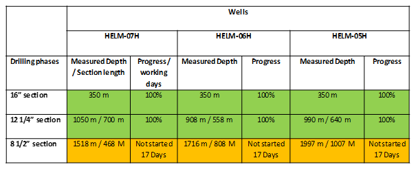 - L’activité de forage des 03 puits HELM 05, 06 et 07 a commencé depuis Juin 2018.