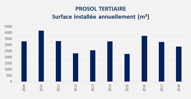 A partir de 2005, suite à la promulgation de la loi n°2004-72 relative à la maîtrise de l’énergie et la création du fonds national de maîtrise de l’énergie en 2005, un nouveau programme a été lancé sous l’intitulé PROSOL Résidentiel. Ce programme a permis de porter le rythme de réalisation de 7000m² en 2004 jusqu’à une moyenne d’environ 70.000m²/an depuis 2007.