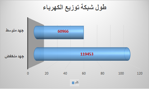 أما بخصوص طول شبكة التوزيع، فقد بلغت 442 186 كلم إلى موفى سنة 2021، وهي تتوزع حسب مستويات الجهد كما يلي: