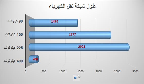 بلغ طول شبكة نقل الكهرباء إلى موفى سنة 2021 قرابة 6793 كلم وتتوزع حسب الجهد كما يلي: